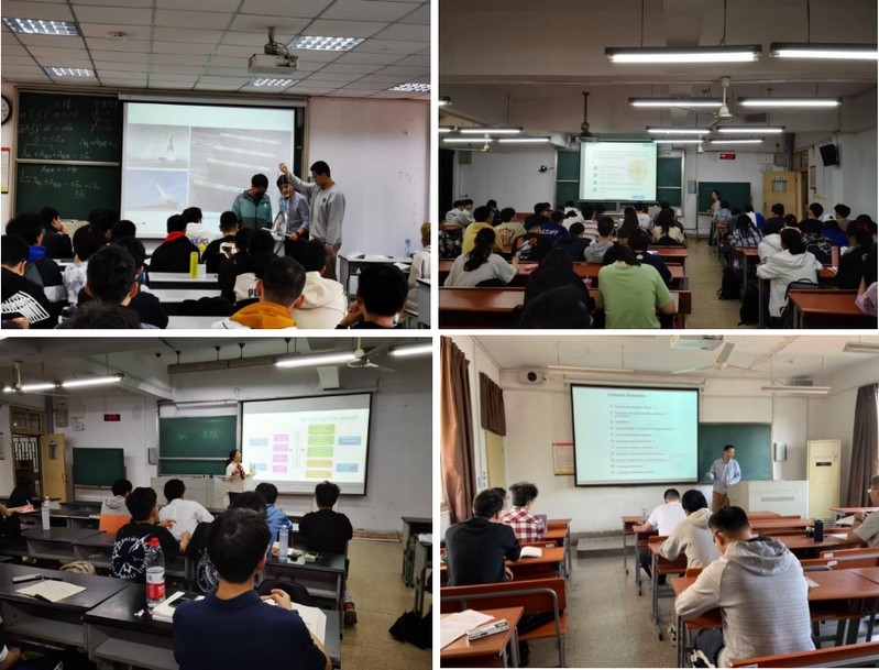 赵承良老师讲授“力学”示范课,回顾“天宫课堂”陀螺运动试验,介绍“心怀祖国、勇于创新、甘于奉献”的陀螺精神,引出教学主题“角动量”及“角动量守恒”,赵老师结合科普教育,通过润物细无声的方式有机融入思政内容,注重对学生思想价值的引领。须萍老师带来一堂生动的《普通物理》(英文)习题课,结合雨课堂信息化教学手段实现了实时互动,及时掌握课堂答题情况,帮助学生更好把握转动及角动量章节的重难点。蔡田怡、徐惠中老师分别讲授《现代物理学(英文)》与《理论力学(英文)》,结合演示实验,积极与学生互动,引导启发式授课。四位老师的课堂展示出了各自的特色和风采,起到了公开示范的重要作用,也成为学院推广优质课程的重要渠道。