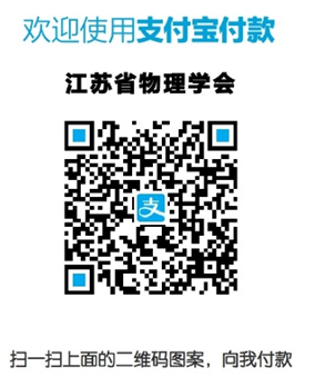方式二:通过支付宝汇至学会支付宝账号手机进入支付宝,点击“扫一扫”,扫描右侧江苏省物理学会官方支付宝二维码进行缴费,并同方式一要求填写备注。该方式须将教师公务卡与支付宝捆绑。(手机进入支付宝,依次点击“我的”→“银行卡”→“+”进入添加银行卡页面,完成公务卡添加。在扣款时选择公务卡支付)