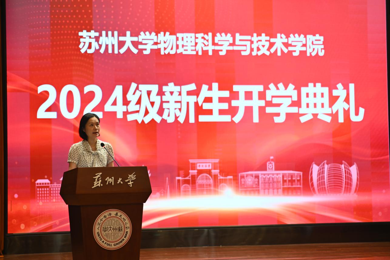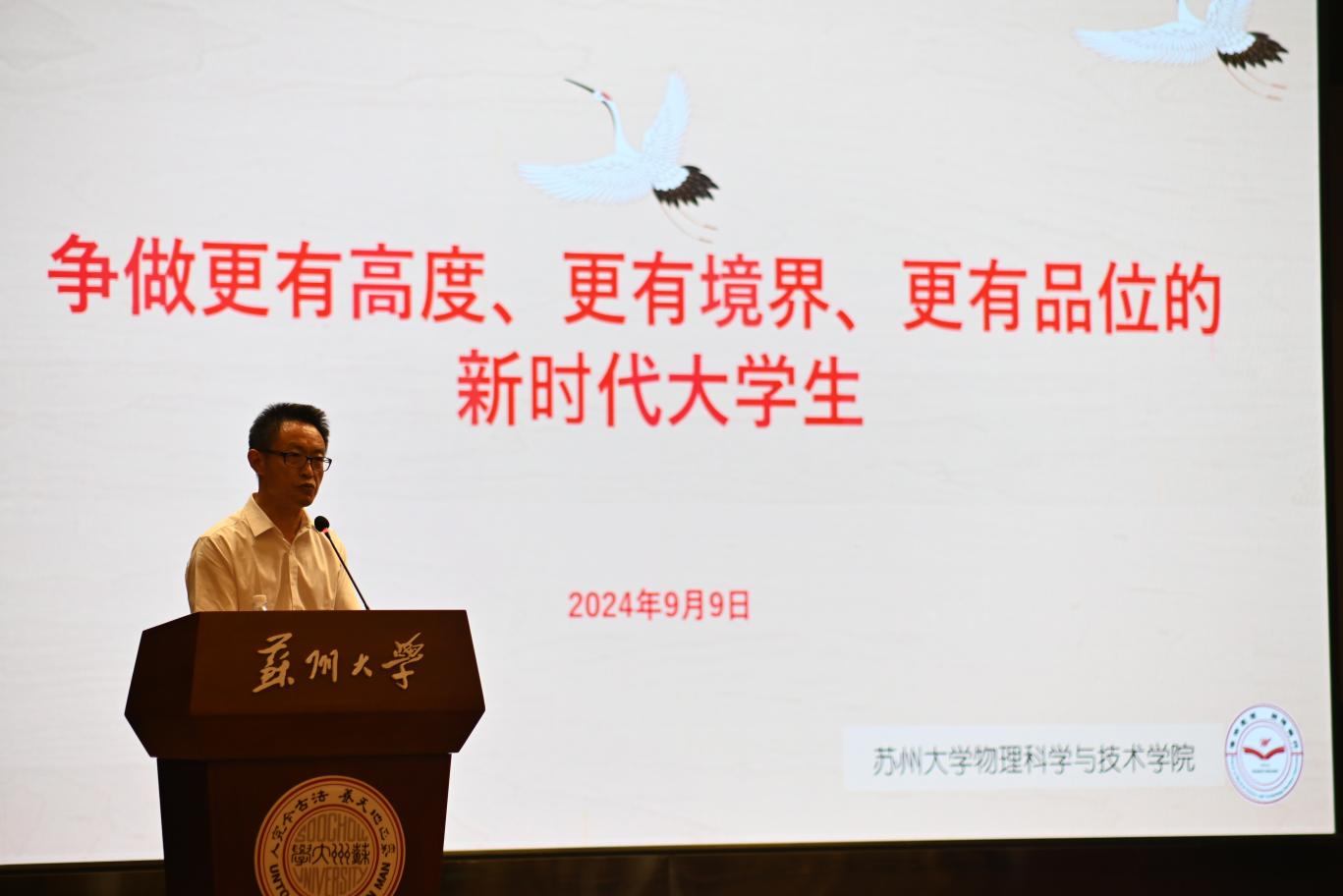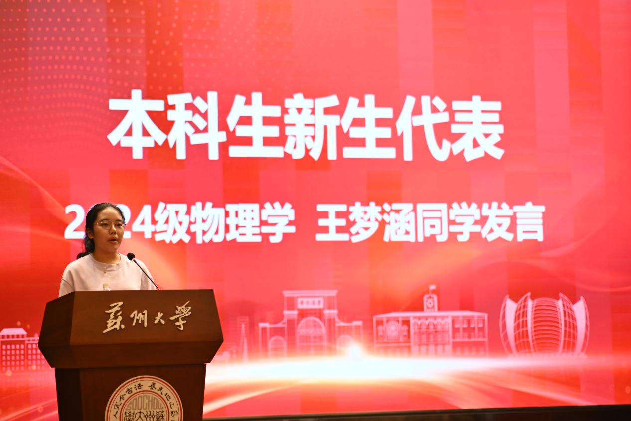 2024级物理学王梦涵同学作为本科新生代表发言,激励全体新生在新学期中追求卓越,勇于探索。她中强调了追梦和奋斗的重要性,鼓励同学们在物理学的探索中,要勇于从零开始,积极调整自我,以适应新的学习环境和挑战,呼吁新生们在追求学术成就的同时,也要培养高尚的品德和责任感。王梦涵的发言不仅激励了新生,也体现了学院对学生们全面发展的期望。