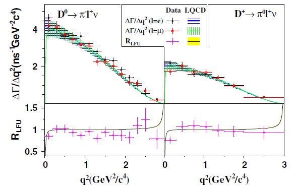 在Phys. Rev. Lett.121, 171803 (2018)的工作中,精确测量了半轻衰变过程D®pmvm的分支比,联合D®peve的测量结果,检验了粒子物理标准模型中的轻子普适性定理。此前,BABAR, BelleLHCb国际合作组在B介子衰变中发现了轻子普适性破坏的迹象,意味着可能存在超出标准模型的新物理。本工作利用BESIII实验上的大量D介子样本,以最高精度在D介子衰变中对轻子普适性定理进行验证,为寻找超出标准模型的新物理提供了重要实验信息。