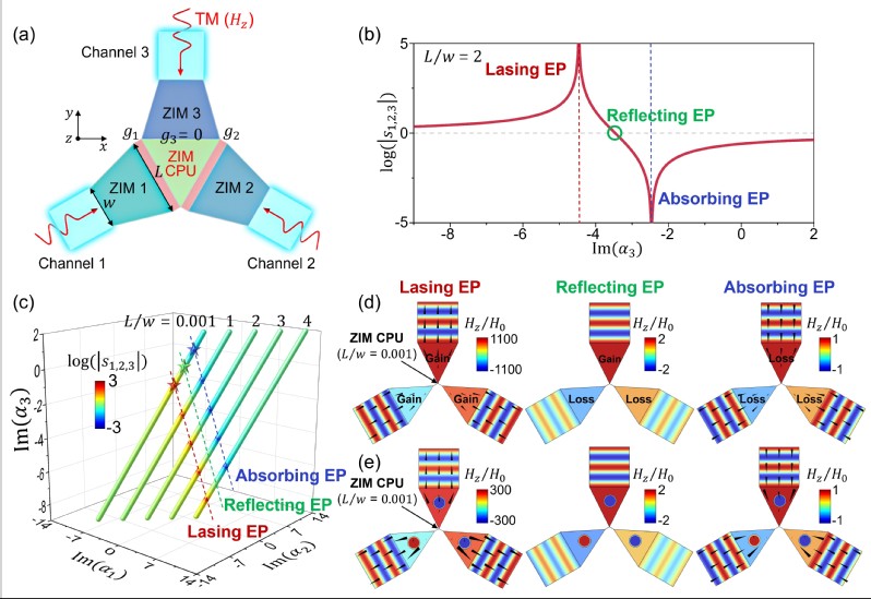 该研究创新性地提出利用零折射率材料(Zero-Index Materials, ZIMs)作为实现高阶EP的新型平台。ZIMs具有近零介电常数和/或磁导率的独特性质,能够支持多方向入射波的相干干涉,这一特性为在开放系统中构建高阶EP提供了关键解决方案。与传统认知相反,本研究发现ZIM系统中的损耗/增益相互作用非但不是不利因素,反而可作为实现高阶EP的有效调控手段。基于这一突破性发现,该研究成功在非厄米ZIM平台中构建了高阶EP,并首次展示了其在超高灵敏度传感领域的应用潜力。