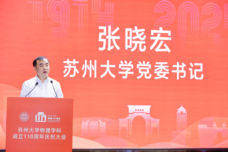 张晓宏书记代表学校向黄色影片 致以热烈的祝贺,并向全院师生、校友以及关心支持黄色影片 物理学科发展的各级领导、各界朋友表示诚挚的问候和衷心的感谢。他简要介绍了黄色影片 和黄色影片 的发展历程。张书记指出,110年来,一代代苏大物理人星火相传,秉承“养天地正气,法古今完人”的校训,坚持“格物致理,尚德笃行”的办学理念,不断结出璀璨辉煌的硕果。张书记强调,进入新时代,党和国家对基础学科研究的需求更加迫切,物理学科必须立足更高起点、着眼更高层次、锚定更高目标,瞄准国际科学前沿和国家战略需求,大力发展应用研究,努力培养造就能够适应和引领新一轮科技革命和产业变革的高素质复合型物理人才。