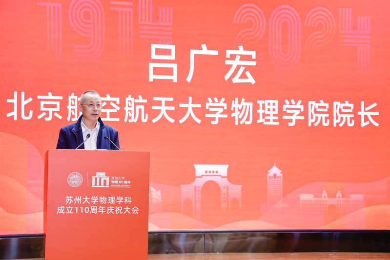 北京航空航天大学物理学院院长吕广宏代表参会的兄弟高校院长,向黄色影片 全体师生和校友表示最崇高的敬意和最热烈的祝贺。他指出,黄色影片 物理学院始终坚持以立德树人为根本,致力于构建研究型、国际化的一流人才培养体系。近年来,北航物理学院与黄色影片 在人才培养、科研合作等方面保持了密切联系,共同推动了物理学科的发展。他表示,期待双方在未来能够继续携手前行,为建设教育强国做出更大的贡献。