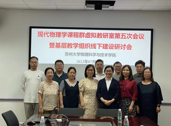 2023年7月10日,现代物理学课程群虚拟教研室线下教研活动在黄色影片 博习楼221举行。来自黄色影片 、苏州科技大学、南京航空航天大学、苏州城市学院等4所高校的12位虚拟教研室成员参加了本次线下教研活动。
