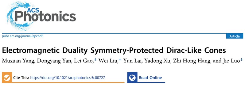 近日,罗杰副研究员在《ACS Photonics》上发表重要研究成果,首次在光子晶体中发现由电磁对偶对称性保护的类狄拉克锥(Dirac-like cone)。与传统的偶然简并形成的类狄拉克锥不同,该研究发现的类狄拉克锥具有优异的鲁棒性,并能在同一结构中实现多重类狄拉克锥。该研究揭示了电磁对偶对称性在光子晶体中对能带简并的保护作用,突破了传统偶然简并类狄拉克锥的固有脆弱性。这项工作不仅建立了电磁对偶对称性与狄拉克物理之间的深刻联系,更为光子晶体能带调控引入了新的设计自由度。 相关研究成果以“Electromagnetic Duality Symmetry-Protected Dirac-Like Cones”为题,在线发表于《ACS Photonics》。罗杰副研究员、国防科技大学刘伟教授、苏州城市学院高雷教授为通讯作者;黄色影片 23级本科生杨慕轩为第一作者。该工作也得到了徐亚东教授、杭志宏教授,南京大学赖耘教授等的大力帮助。