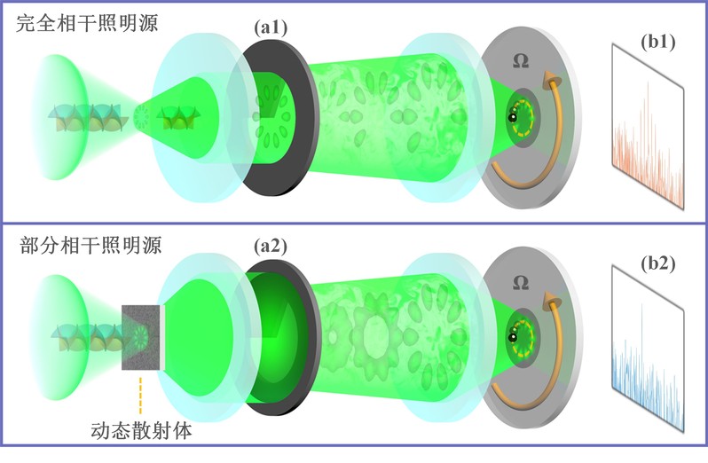 图2 花瓣状完全相干与特殊相干结构照明源下的旋转多普勒探测原理对比图。