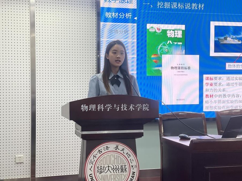 最后,郭永坤老师对学院师范生在第十四届“格致杯”物理师范生教学技能展评活动中的表现进行了回顾, 黄色影片 18名参赛学子表现优异,共荣获教学技能展示一等奖4项、二等奖4项;教具展示一等奖4项、二等奖5项;优秀论文展示特等奖2项、一等奖2项、二等奖3项、三等奖2项。随后的获奖作品展示环节中,本科生李逸青、王佳骏,研究生王曦、项姿睿和张亚文带来了精彩生动的教学片段展示,体现了扎实的物理专业素养。