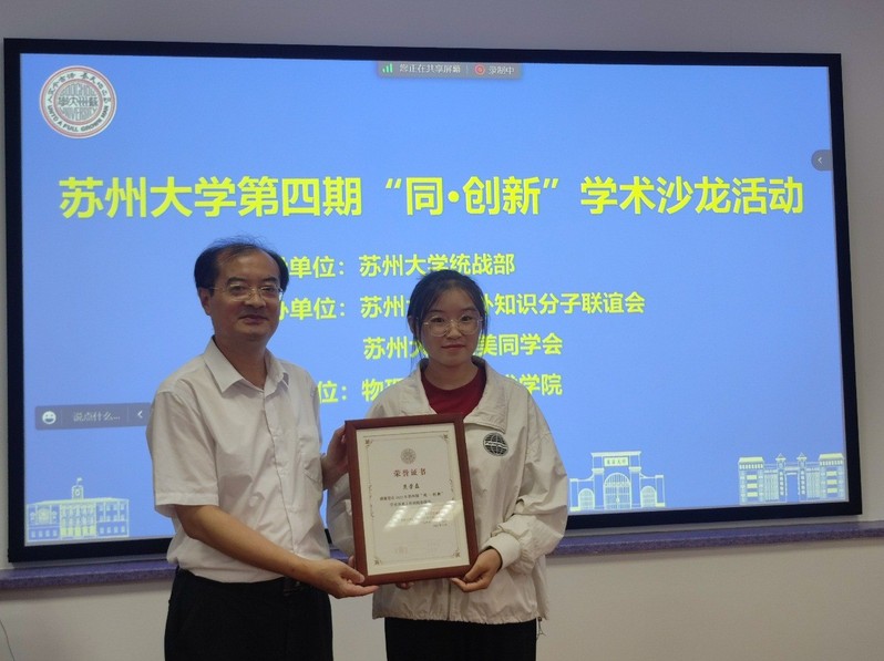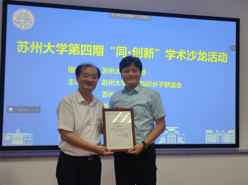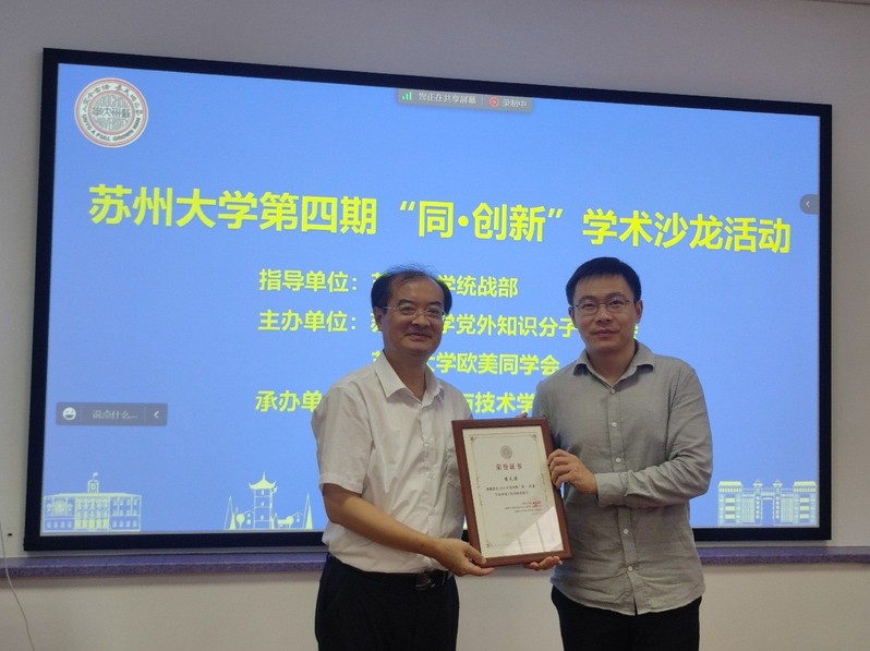 随后,黄常委为第四期“同·创新”学术沙龙活动的主讲人颁发证书并与与会者合影留念。