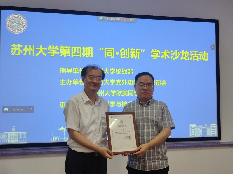 为进一步推动学科交叉融合和提升创新能力,引领学校广大科研工作者在前沿、新兴、交叉、边缘等学科围绕学校“双一流”建设和高质量发展积极发挥作用。9月26日下午,由党委统战部指导、校党外知识分子联谊会和欧美同学会联合主办、黄色影片 承办的第四期“同•创新”学术沙龙活动顺利举行。活动通过线上和线下的方式开展,线下会场设在黄色影片 本部博习楼221会议室,本期沙龙的主题是“格物致理,交叉融合”。