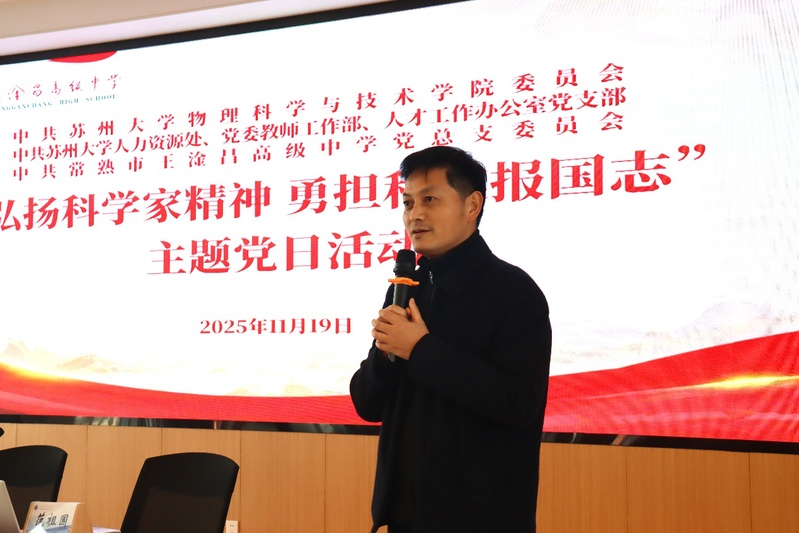 学院党委书记赵承良在总结发言中指出,王淦昌先生是苏州大地孕育的科学巨匠,其精神是校地党组织共建共享的 “精神富矿”。此次活动既是一次精神的传承,更是校地长期合作的起点。未来,学院将依托物理学科优势,联合王淦昌高级中学开展“科学家精神进校园”“中学生物理兴趣营”等系列活动,让科技报国的种子在青少年心中生根发芽。