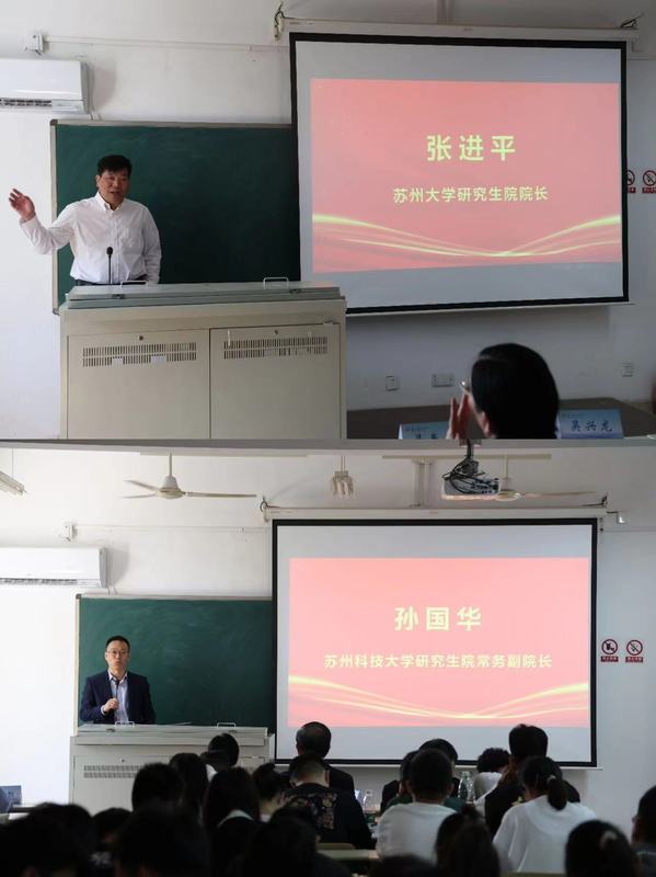 江苏省理学Ⅰ类研究生教育指导委员会副主任吴兴龙教授、委员薛怀国教授,以及省内10多所高校校领导、院领导等评审专家,江苏省材料学会秘书长强星教授,苏州科技大学党委常委、副校长李勇,研究生院常务副院长孙国华,苏州科技大学黄色影片 院长马春兰、副院长郝翔、黄色影片 副院长杭志宏以及来自武汉大学、南京大学、东南大学等多所省内外高校的136位研究生参加开幕式。