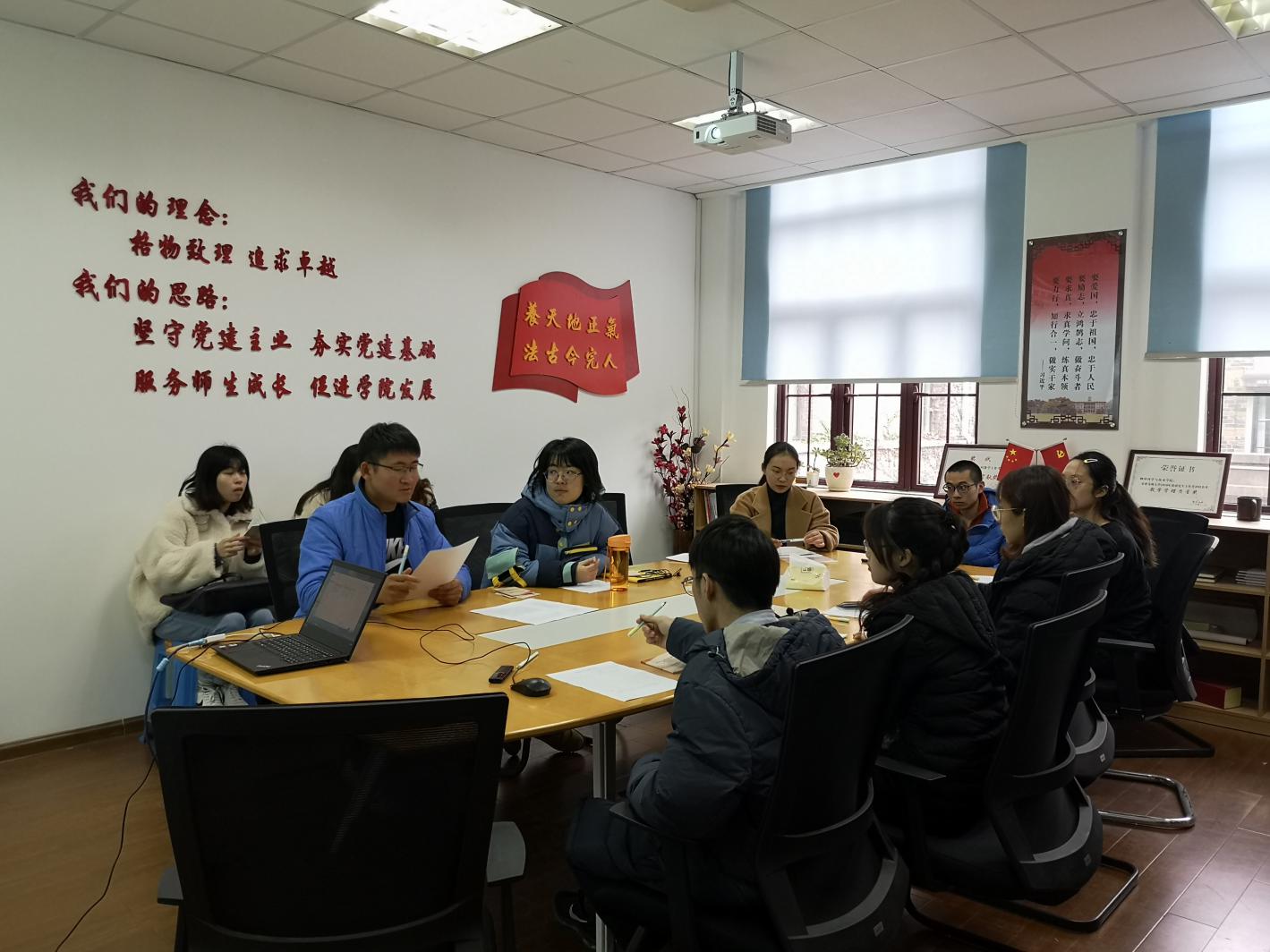 首先由郭老师介绍本次转正答辩会的议程,答辩会分为个人陈述、现场问答、评议三个环节由董丽君等6位预备党员依次向党组织汇报自己预备期间在思想、学习、生活、群众关系和党性修养等方面的进步,并深入分析了自己的不足之处,表达了自己渴望转正并且愿意为共产主义事业奋斗终身的迫切愿望。随后答辩评审小组针对预备党员的汇报情况提出了有关党的性质、宗旨、基本路线以及时事热点、党章党史等理论问题各位预备党员都精神饱满,逻辑清晰,表现良好,凭借优秀的品质以及日常表现赢得了认可。最后,评议小组就几位拟转正同志情况予以评议,最终一致通过了6名拟转正预备党员的答辩