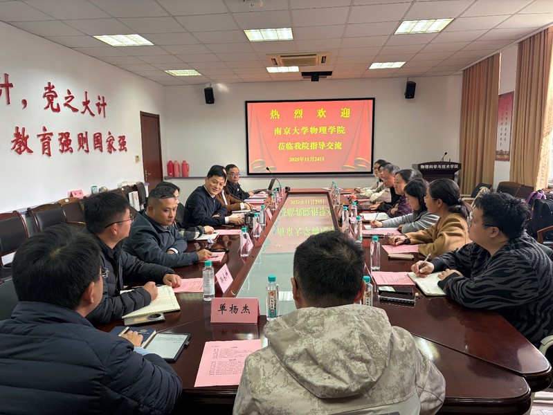 2025 年 11 月 24 日下午,南京大学物理学院党委书记鞠艳率队到访黄色影片 ,双方围绕党建品牌建设、学生工作等开展专题交流。南京大学物理学院党委副书记李岩,黄色影片 党委副书记章宪,黄色影片 党委委员、综合办主任王迎春,以及双方相关党支部书记和辅导员代表等出席了会议。座谈会由黄色影片 党委书记赵承良主持。