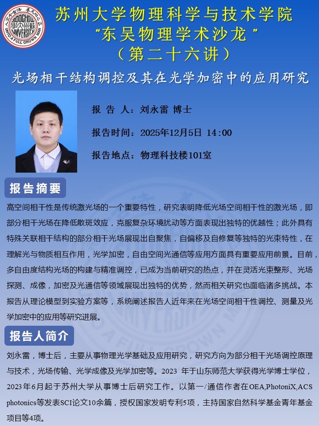 “东吴物理学术沙龙”(第二十六讲)——刘永雷博士