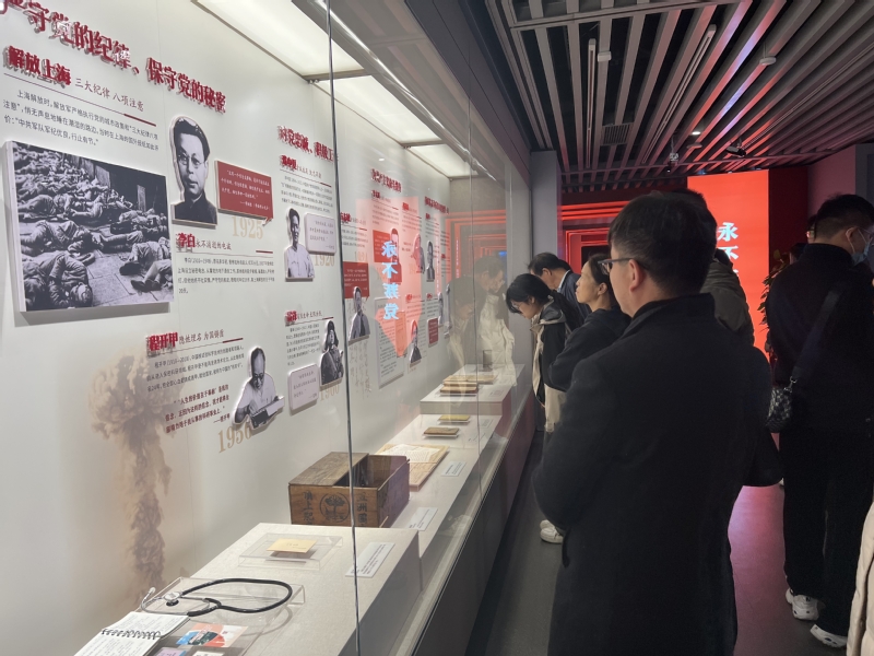 上午,党员同志们首先来到上海四行仓库抗战纪念馆。到达晋元纪念广场的仓库西墙,映入眼帘的便是一座布满弹孔的混凝土建筑,这就是当时日军火力最为凶猛的地方。西墙下的广场上,党员们伫立合照,致敬不朽的爱国主义丰碑。接着依次参观了序厅、“血鏖淞沪”、“坚守四行”、“孤军抗争”、“不朽丰碑”及尾厅等六个部分的陈列内容,了解保卫战中舍身为国、浴血奋战的故事,缅怀革命先烈。