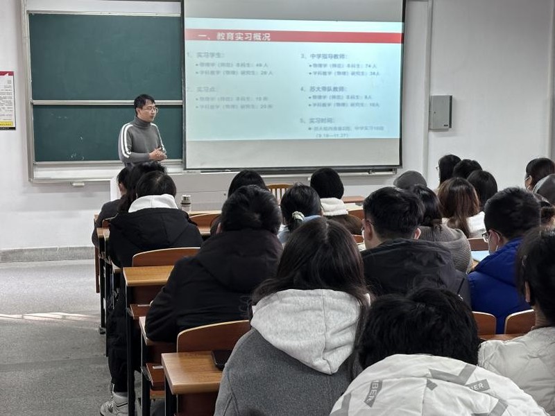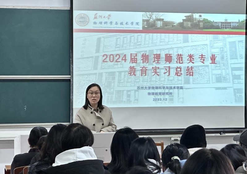 12月7日下午13时30分,2024届物理师范类专业教育实习总结大会在卫校楼101成功举行。会议由物理教育研究所所长桑芝芳主持,苏州市教育科学研究院高中物理教研员曹会、黄色影片 副院长周丽萍,教育实习指导教师和研究生导师陈航燕、董裕力、刘增泽、董雯、罗晓琴,毕业班辅导员郭永坤以及2020级物理学(师范)本科生、2022级、2023级学科教学(物理)研究生参加了本次会议。