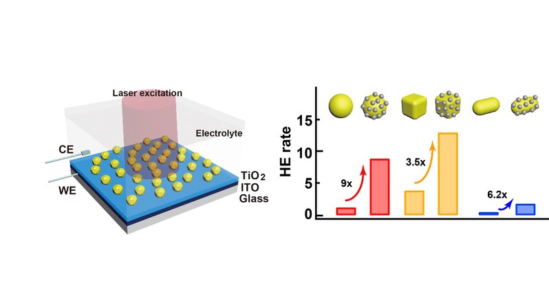 电子的表面散射作为局域等离激元弛豫的一个物理过程,一方面会导致等离激元共振峰变宽以及品质因数降低;但另一方面能在纳米晶内部产生动能为1-3 eV的热电子。这些热电子具有足够的动能克服肖特基势垒注入半导体,从而在器件中形成电流。然而,对于等离激元胶体纳米晶的表面散射的调控,并使之有效增强热电子响应还具有较大的挑战性。