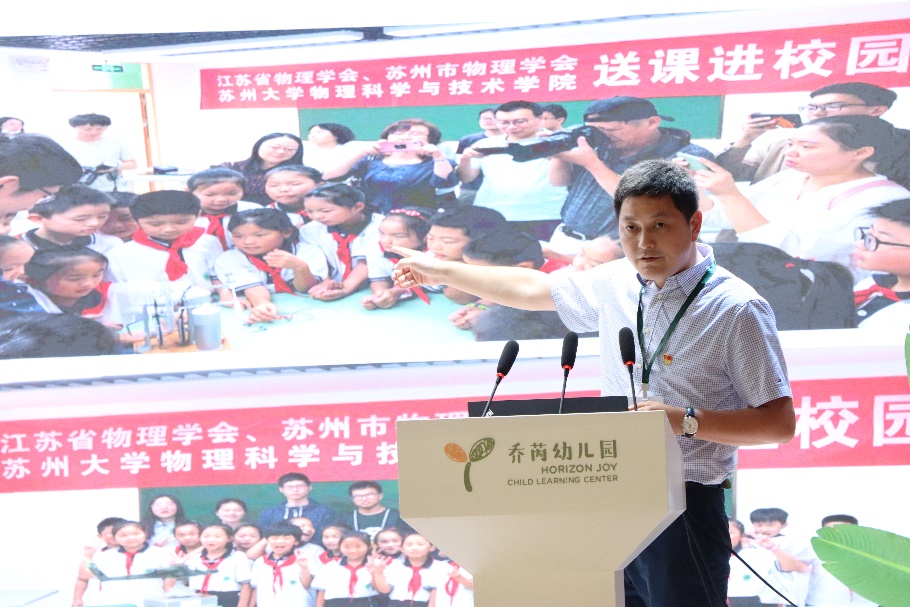 为庆祝六一儿童节、深入进行党史教育和贯彻落实习近平总书记关于“科技创新、科学普及是实现创新发展的两翼,要把科学普及放在与科技创新同等重要的位置”的讲话精神。黄色影片 和吴江区乔芮幼儿园开展“党建+科普 大手拉小手、科普零距离”活动暨黄色影片 科普教育基地签约、揭牌、党史学习报告、党史书籍和科普书籍赠送、科普进校园等活动。乔芮幼儿园创办人、江苏捷美投资发展集团董事长、黄色影片 校友会会长王振明,乔芮幼儿园园长朱迅娟、党员代表费柯丹,黄色影片 党委书记孙德芬、院长高雷、副院长赵承良、本科生党支部书记单杨杰参加了本次活动。活动在乔芮幼儿园举行,由乔芮幼儿园园长助理徐莉老师主持。