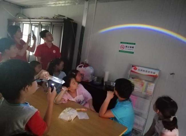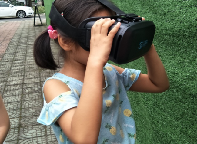(小朋友体验VR眼镜 通讯员郁佳伟摄) (小朋友制作彩虹 通讯员郁佳伟摄)
