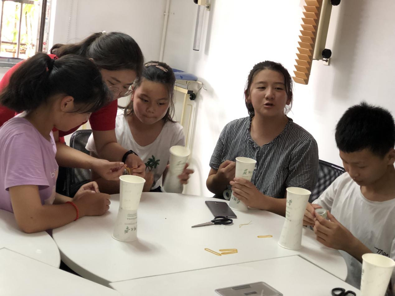 本次活动的最后一部分内容是趣味实验组带来的小实验,在实验组成员的帮助下,小朋友们互相协作,共同制作了由回形针和吸管做成的简易浮沉子,真正做到了“我主沉浮”;之后,实验组成员又向大家演示了独特的“纸杯飞机”——马格努斯滑翔机,用两个纸杯和几根橡皮筋就可以制成能够在空中滑翔的“纸杯滑翔机”,小朋友在学习知识的过程中同时也收获了快乐。