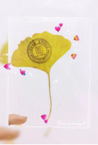 除此之外,我们还精心准备了符合苏大银杏季的特别纪念品,在树叶上雕刻上我们设计的图案,为了永久保存,我们还进行了塑封,给校友一份永久的回忆。