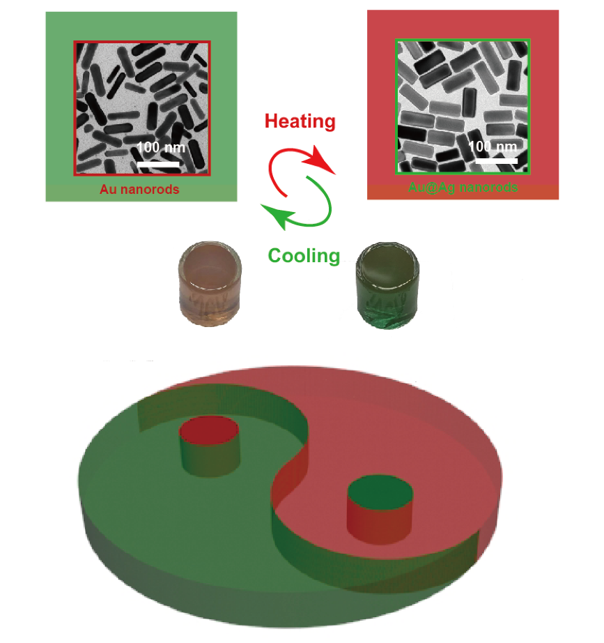 近日, 倪卫海/叶巍翔课题组在等离激元纳米晶热致变色方面取得创新性研究成果。该成果以黄色影片 物理学院以第一单位,“Thermo-responsive Reversible Redox of Ag+/Ag on Au Nanorods” 为题发表在国际权威期刊《Nanoscale》上(影响因子6.97)。