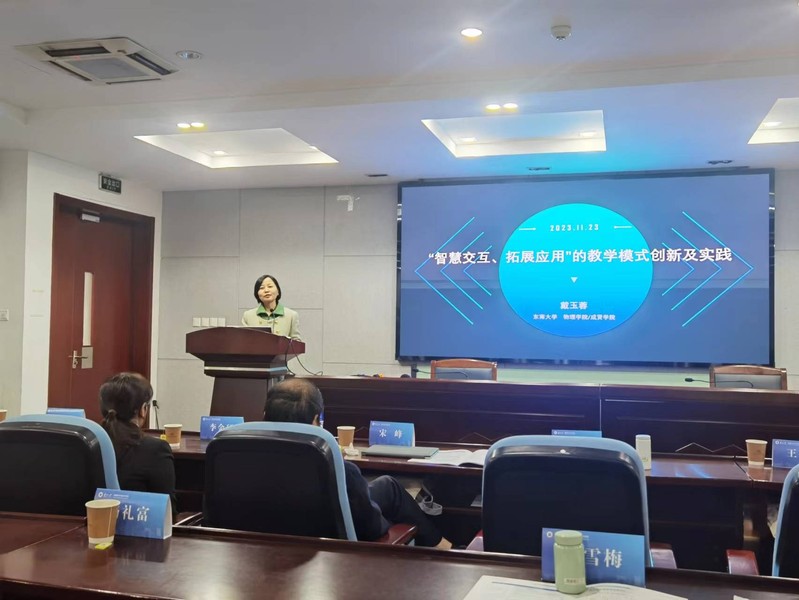 报告二由东南大学成贤学院副院长、江苏省教学名师戴玉蓉教授主讲,报告题目为以“智慧交互、实时反馈、拓展创新”为主征的教学新模式。戴教授从教学内容、教学模式和研学环境三方面阐述了将教学改革和建设聚焦到专业人才培养的基础环节的实践经验;以“自动驾驶”、“电磁黑洞与隐身材料”、“深空探测”等为案例,详细介绍了应对未来科技发展支撑现代工程应用的新工科实验项目的设计和体系建设;概括了将教学过程与信息技术融合,教学内容与工程案例结合,线上线下结合、课内课外延伸、理论实验互补、知识应用互融的大学物理实验智慧教学模式。