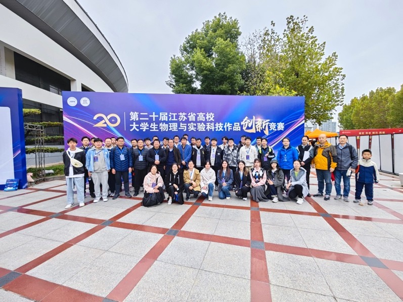 图为苏省高校大学生物理与实验科技作品创新竞赛黄色影片 全体参赛队员与指导老师合影