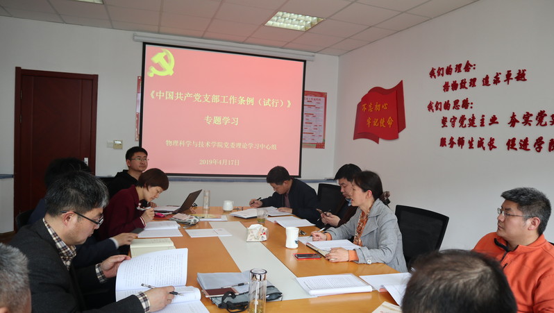 2019年4月17日,学院党委进行了2019年度第二次中心组学习,本次学习主题为《中国共产党支部工作条例(试行)》。党委委员、大学物理党支部书记江美福、党委委员袁海泉、本科生支部书记郭永坤分别作做了主题发言,其他参会人员作了会议交流发言。