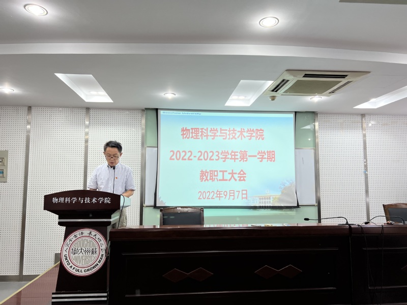9月7日,学院在物理科技楼409会议室召开了2022-2023学年第一学期第一次全体教职工大会。会议由杨礼富书记主持。