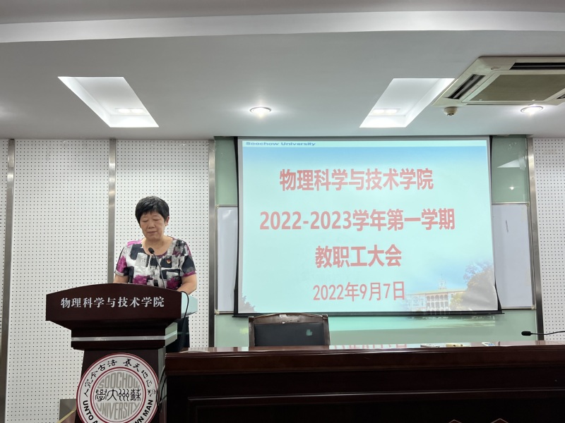 吴雪梅院长向学院全体教师传达了全校干部大会的会议精神,并结合会议精神,从加强宣传思想工作、全面加强党的建设、深化党风廉政建设、完善人才培养体系、健全人才服务管理机制、发挥学科引领作用、增强科研创新能力、提升开放办学水平、健全内控管理机制、维护校园安全稳定十个方面,对2022年下半年学院重点工作做了布置。特别就2022级物理学人才培养机制改革设想进行了说明。