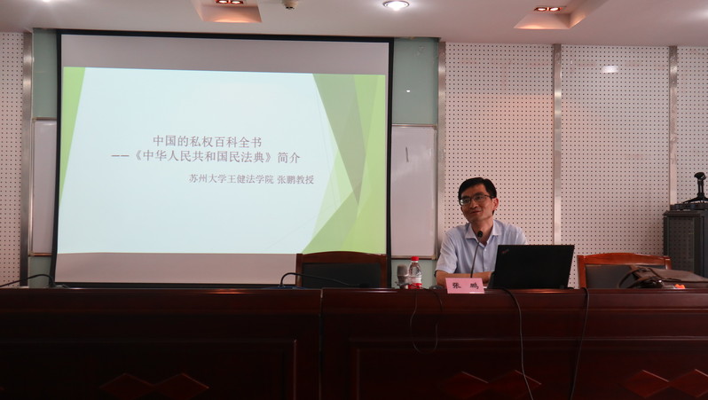 张鹏教授回顾了新中国成立以来四次启动民法典编纂的历程,阐述了《民法典》对中国社会经济的发展、普通民众生活的重要意义,结合与普通民众密切相关的一些热点问题,深入浅出地对《民法典》进行了解读。张教授指出,《民法典》的颁布,对维护人民权益,发展社会主义市场经济,巩固社会主义基本经济制度,推进全面依法治国,提高治理能力现代化水平都具有重大的意义。