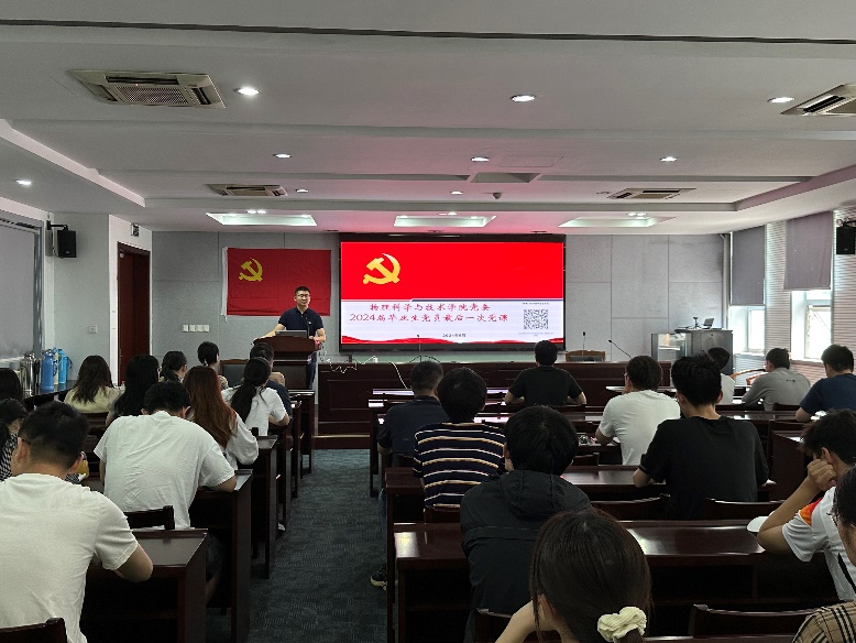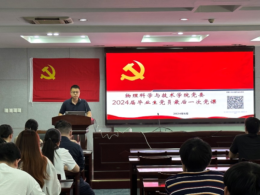 2024届学子毕业在即,为了加强毕业生党员离校教育,引导毕业生党员在学思践悟中坚定理想信念,在实干担当中锤炼党性修养,2024年6月13日,黄色影片 举行了毕业生党员教育系列活动暨“最后一堂党课”活动。学院党委副书记谢燕兰,专职组织员吕冬丽,本科生党支部书记郭永坤,研究生辅导员刘晓佳及2024届全体毕业生党员参加本次活动。