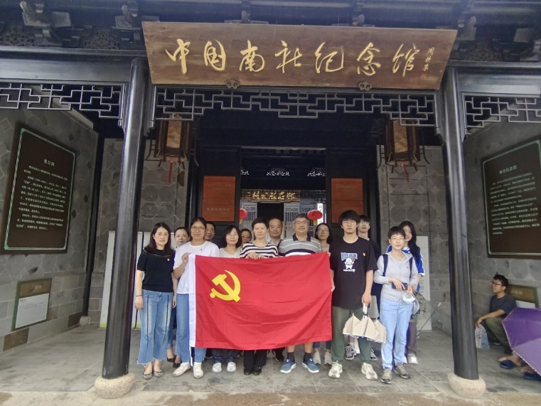 最后一行人来到中国南社纪念馆,这里原来是抗清将领张国维的祠堂,后因1909年11月13日,陈去病、高旭、柳亚子、黄宾虹等17位文人在张国维祠举行了第一次雅集,宣告成立了中国近代史上第一个革命文学团体——南社而闻名于世。南社是中国历史上非常重要的革命社团,是中国共产党必不可少的部分,对新中国的成立有极大的影响。党员同志们怀着激动的心情在此合影留念,心中充满对先烈们的怀念和敬意。