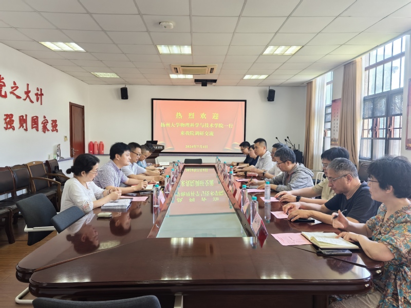 为加强校际交流合作,学习和借鉴兄弟院校的先进经验和成功做法,7月4日,扬州大学黄色影片 党委书记王春雨、院长涂育松、副书记毕瑜林和物理系主任、大学物理部主任等一行8人来黄色影片 开展调研交流,在博习楼221会议室召开座谈会。黄色影片 杨礼富书记、李亮院长、赵承良副院长、周丽萍副院长、院长助理须萍、综合办主任王迎春等参加了调研座谈会。会议由赵承良副院长主持。