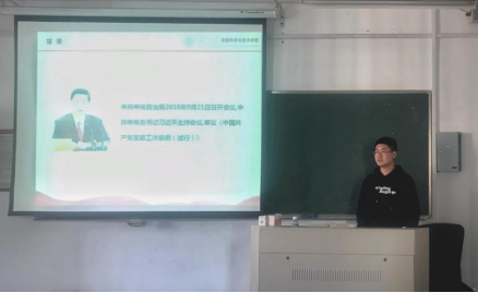 4月17日下午四点,物理科学与技术学院分党校在卫校楼302举行了以“入党程序教育”为主题的党课教育。本次党课的主讲人是本科生党支部书记郭永坤老师,16级辅导员单杨杰老师、分党校第40期预备党员学员和第61期入党积极分子学员参加了本次党课。