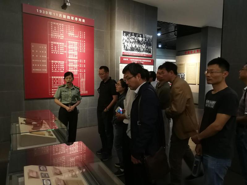 新四军黄桥战役纪念馆新馆,共有八大展馆,主要展示的是图文资料,还有某些经典片段的复原模型,从新四军的成军,再到各位领导人的图片,描绘出了陈毅、粟裕等老一辈无产阶级革命家的光辉形象,再现了当年黄桥战役的历史风云,热情讴歌了新四军指战员不怕牺牲、奋勇杀敌和黄桥人民积极支前、无私奉献的革命精神。同志们听着讲解员的激情解说,看着一张张鲜活的图片、一段段感人的文字、一件件珍贵而古老的物件,踏寻红色足迹,濡染革命豪情,无不为先辈们对马克思主义、共产主义的信仰,对中国共产党的无限忠诚,运筹帷幄、决胜千里的宏伟气魄和不怕牺牲、英勇奋战的精神,广大人民对共产党的支持和拥戴而感动。支前的黄桥烧饼,因此名扬千里。