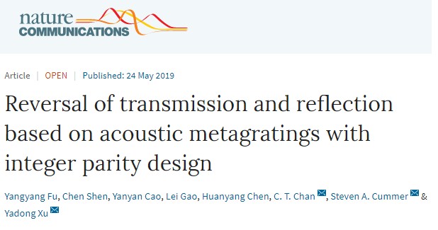 近日,黄色影片 的徐亚东副教授课题组与美国杜克大学的S. A. Cummer教授课题组及香港科技大学陈子亭教授合作设计和研究了一种透射型相位渐变超构光栅(Phase-gradient metagratings, PGM)。基于多重反射效应,揭示了其中复杂的衍射机理,发现了一种全新的衍射规律:PGM中的高级次衍射特性与PGM超晶格(Superlattice)内的单元个数m的奇偶性有关。通过改变m奇偶性,可以实现散射波在透射通道和反射通道之间的转换,并且这种现象具有很强的鲁棒性。相关成果以“Reversal of transmission and reflection based on acoustic metagratings with integer parity design”为题、以黄色影片 为第一单位,发表在《Nature Communications》杂志上。原黄色影片 博士生、现南京航空航天大学的伏洋洋副研究员、杜克大学的沈宸博士和黄色影片 博士研究生曹燕燕同学为论文的共同第一作者。在研究中,黄色影片 的高雷教授、厦门大学的陈焕阳教授给予大力支持。