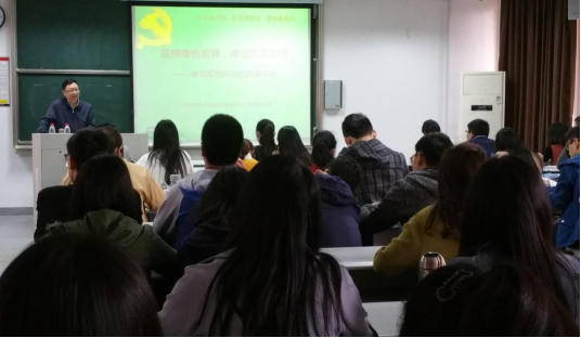 陈书记引用习近平总书记在十八大上围绕改革发展稳定、内政外交国防、治党治国治军等各个方面的讲话引出了本次报告的主题——“坚持绿色发展,建设生态文明”。陈书记分别从什么是绿色发展、为什么要坚持绿色发展以及如何坚持绿色发展三个方面向我们阐述了绿色发展的重要性以及他对绿色发展的内涵的理解。