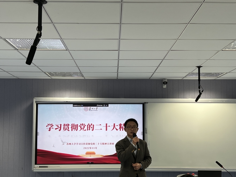 李孝峰指出,与会的科研工作者们都肩负着为国家增强技科实力、为国家输送科技人才的重任,更需要深刻领会党的二十大关于教育、科技、人才的重大部署,深刻认识到我们所面临的风险与挑战,牢记初心与使命,勇于自我革新,把自己的事业融入到苏大、融入到祖国的发展之中,与时代同步伐,与国家共发展。要高举中国特色社会主义伟大旗帜,全面贯彻习近平新时代中国特色社会主义思想,牢记空谈误国、实干兴邦,坚定信心、同心同德,埋头苦干、奋勇前进,为全面建设社会主义现代化国家、全面推进中华民族伟大复兴而团结奋斗!