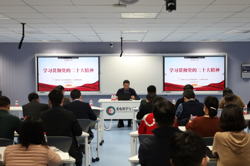 为全面把握党的二十大精神,深入领会“两个确立”的重大意义,教育引导广大师生把思想和行动统一到党的二十大精神上来,11月28日下午,校党委宣讲团成员、校党委常委、副校长李孝峰在激光楼116会议室作党的二十大精神宣讲报告。校科研院、科技党委,黄色影片 和光电科学与工程学院的班子成员、党委委员、党支部书记,及班级班长、团支部书记代表等相关人员参加报告会。会议由物理学院党委书记杨礼富主持。