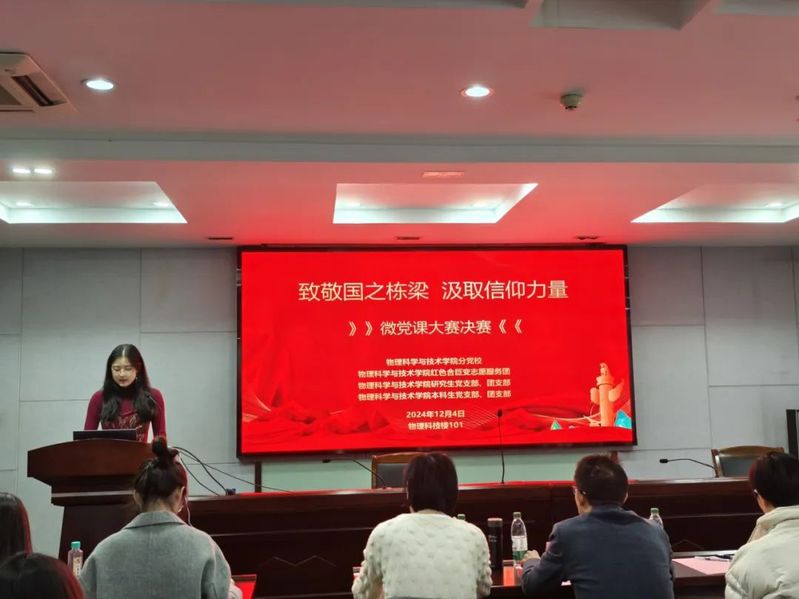 为贯彻习近平总书记关于弘扬科学家精神和加强作风学风建设工作的重要指示,落实《黄色影片 研究生时代新人“铸魂·卓越”工程实施方案》,涵养优良学风,推动践行科学家精神。2024年12月4日下午物理科技楼101,黄色影片 联合能源学院、光电学院、电子信息学院、数学学院、计算机学院、王健法学院和商学院举办了以“致敬国之栋梁,汲取信仰力量”为主题的科学家精神宣讲微党课大赛。