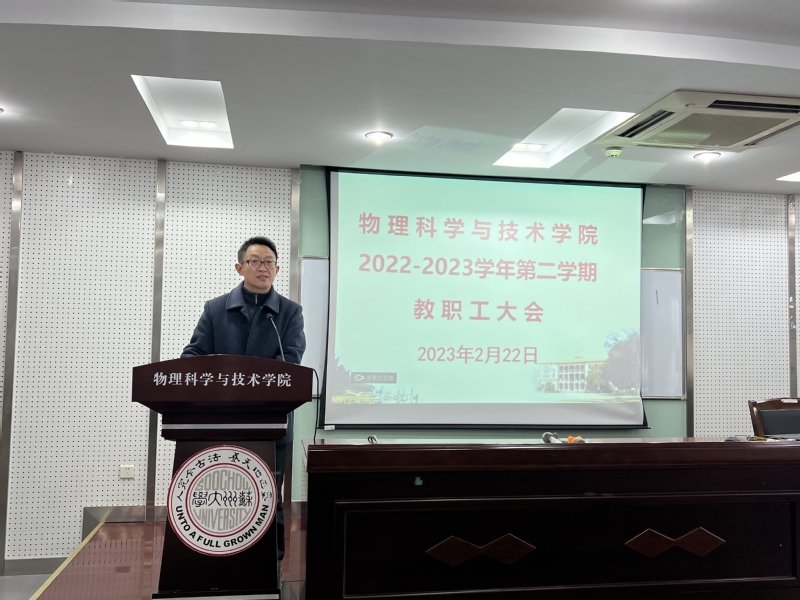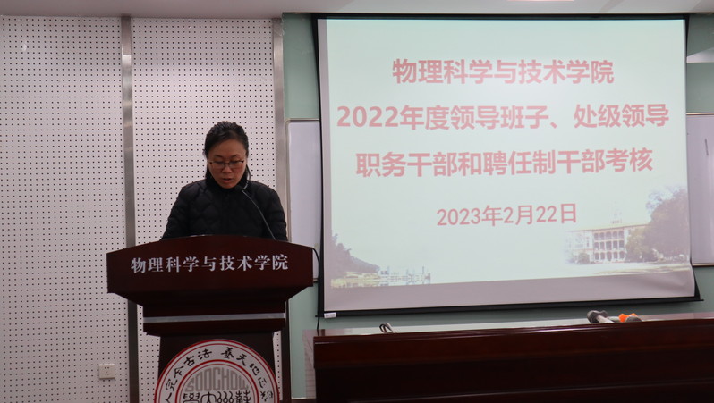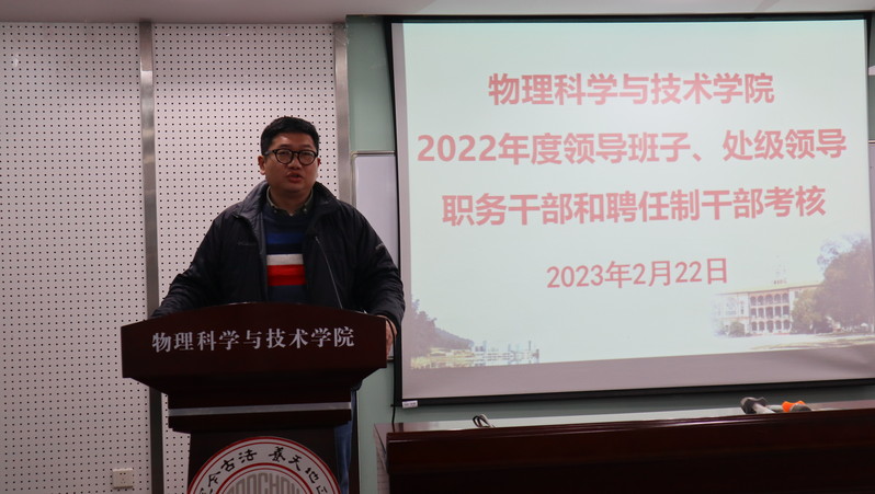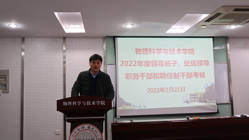 2月22日下午,物理学院在物理科技楼409会议室召开2022年度领导班子、处级领导职务干部和聘任制干部考核民主测评会及学院新学期第一次教职工大会。会议由杨礼富书记主持。