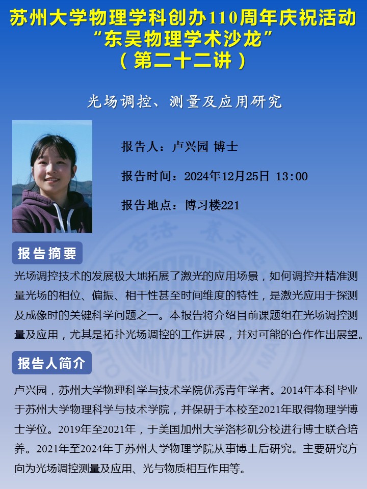 “东吴物理学术沙龙”(第二十二讲)——卢兴园博士