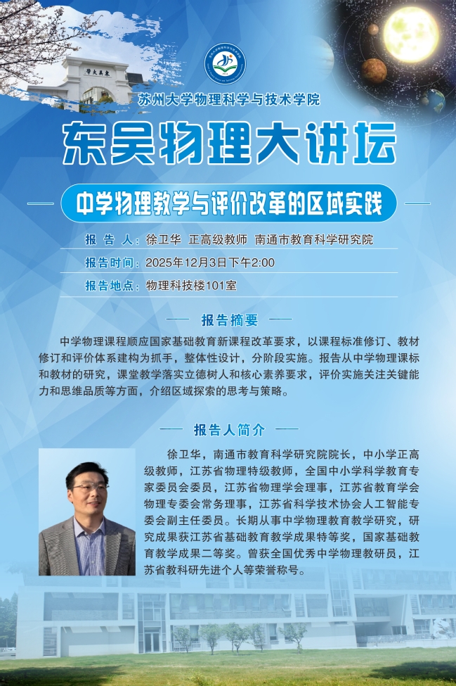“东吴物理大讲坛“——徐卫华正高级教师
