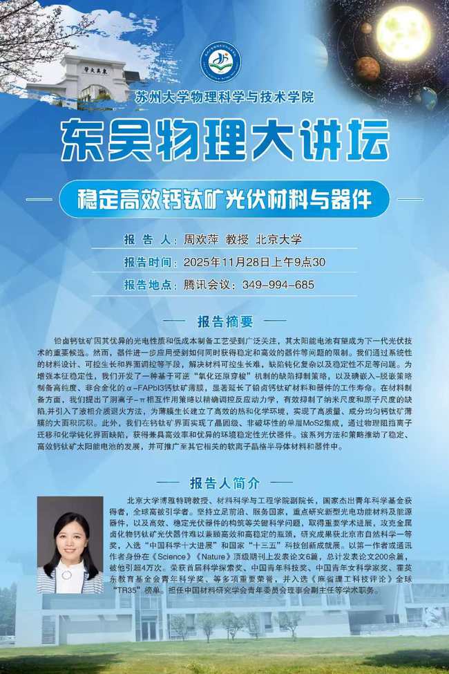 “东吴物理大讲坛“——周欢萍教授